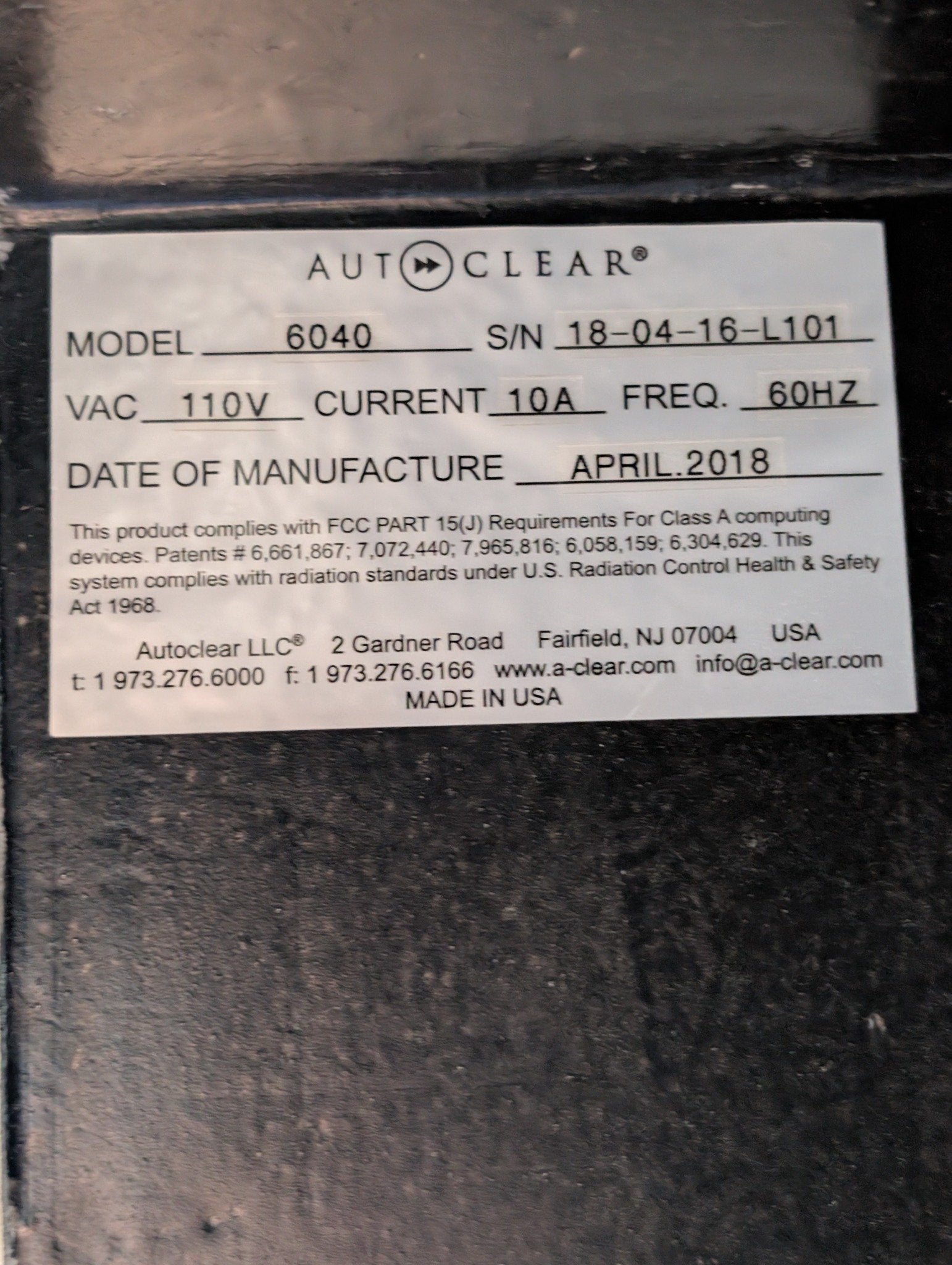 - Model: AutoClear 6040